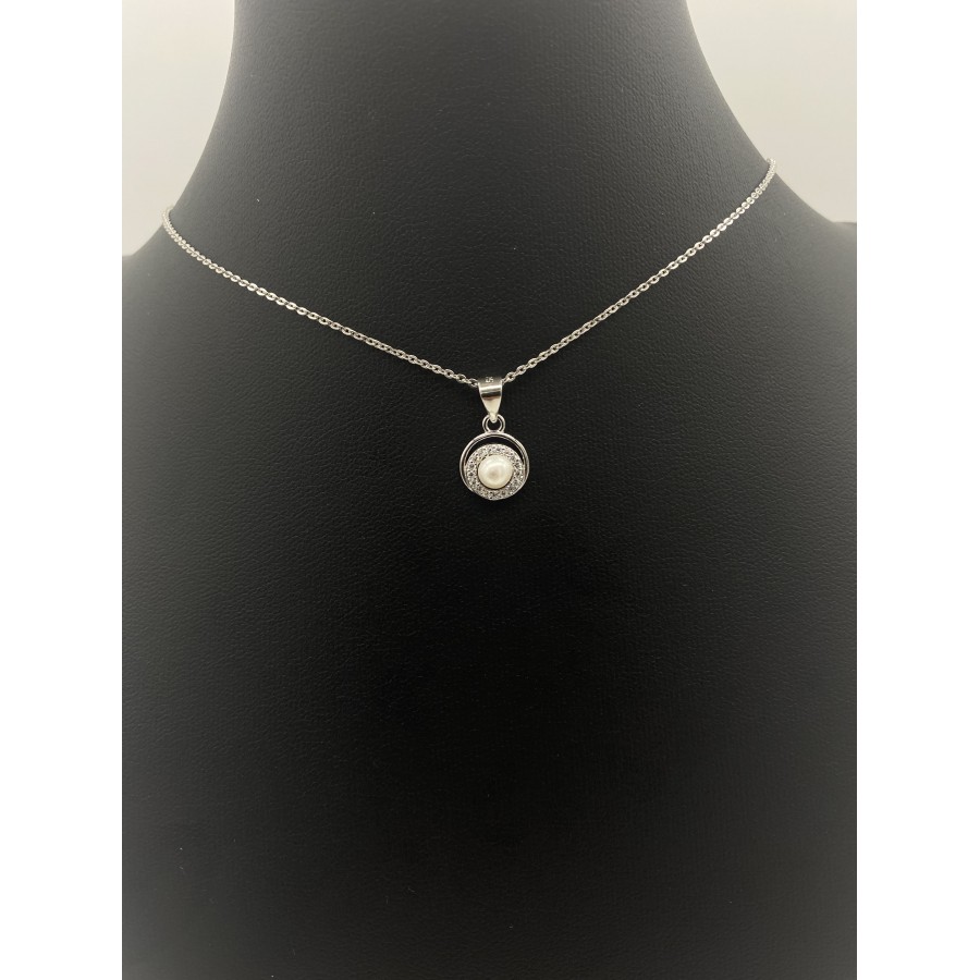 Ασημένιο κολιέ 925 επιπλατινωμένο με πέρλα