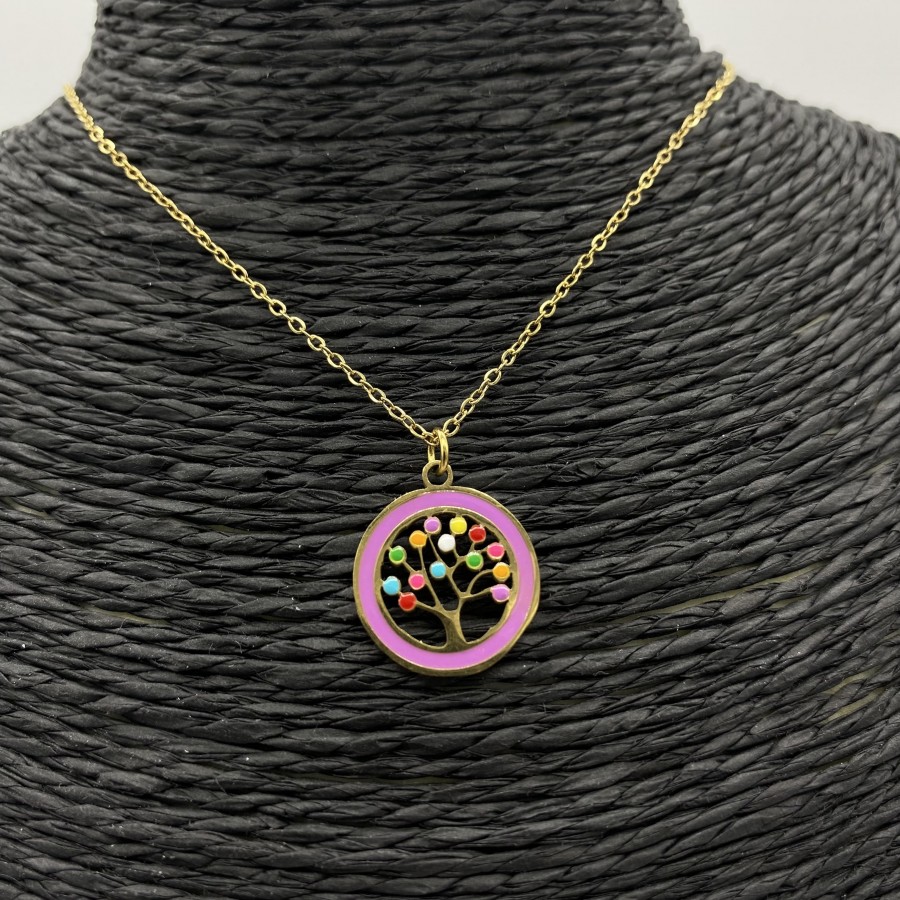 Χρυσό κολιέ δέντρο ζωής από ανοξείδωτο ατσάλι με πολύχρωμο σμάλτο