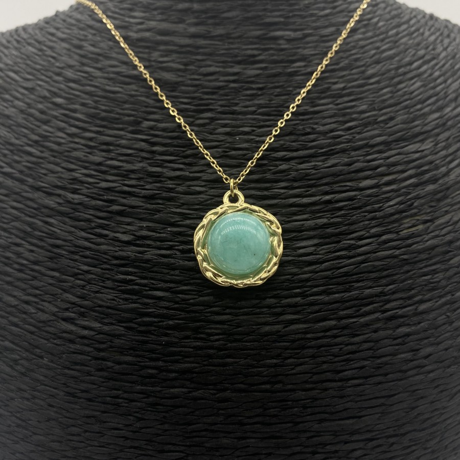Χρυσό κολιέ από ανοξείδωτο ατσάλι με βεραμάν ημιπολύτιμη πέτρα