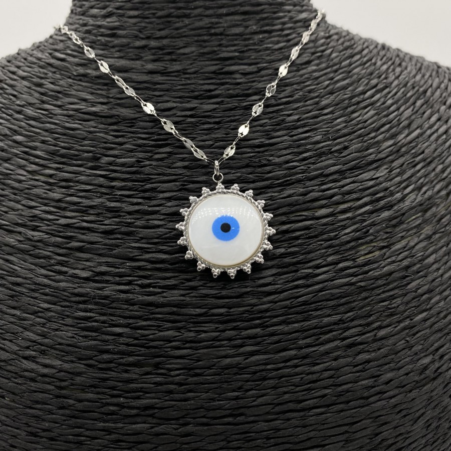 Ασημένιο κολιέ μάτι από ανοξείδωτο ατσάλι