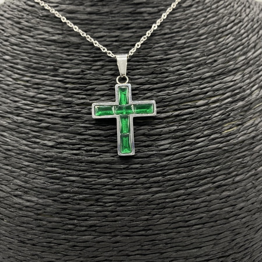 Ασημένιο κολιέ σταυρός από ανοξείδωτο ατσάλι