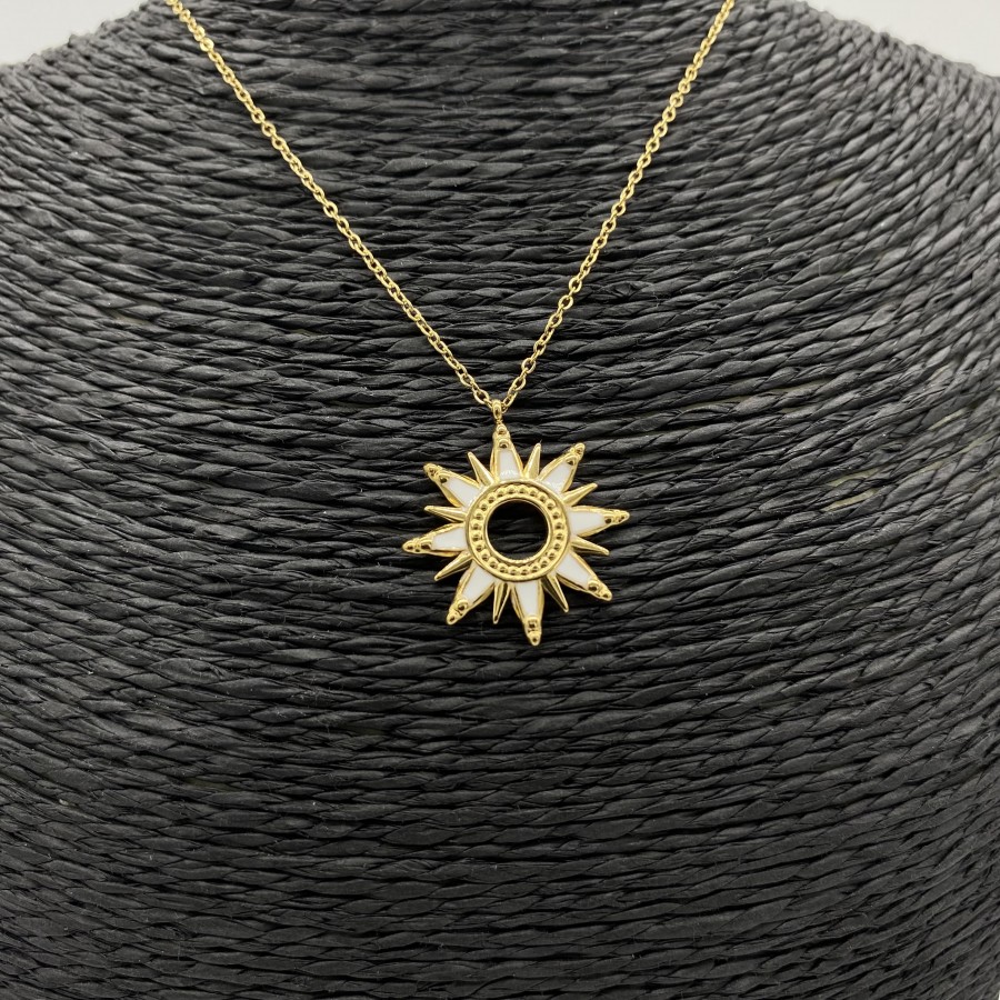 Χρυσό κολιέ ήλιος από ανοξείδωτο ατσάλι με λευκό σμάλτο